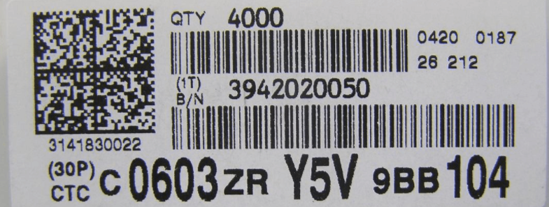 如上圖所示臺(tái)灣國巨貼片電容標(biāo)簽(YAGEO第3廠,簡稱Y3廠)