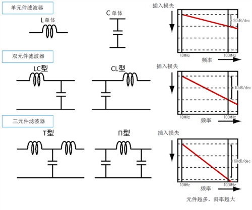 上述兩種元件是最簡單的低通濾波器,可以通過相互的組合,構成高性能的低通濾波器。